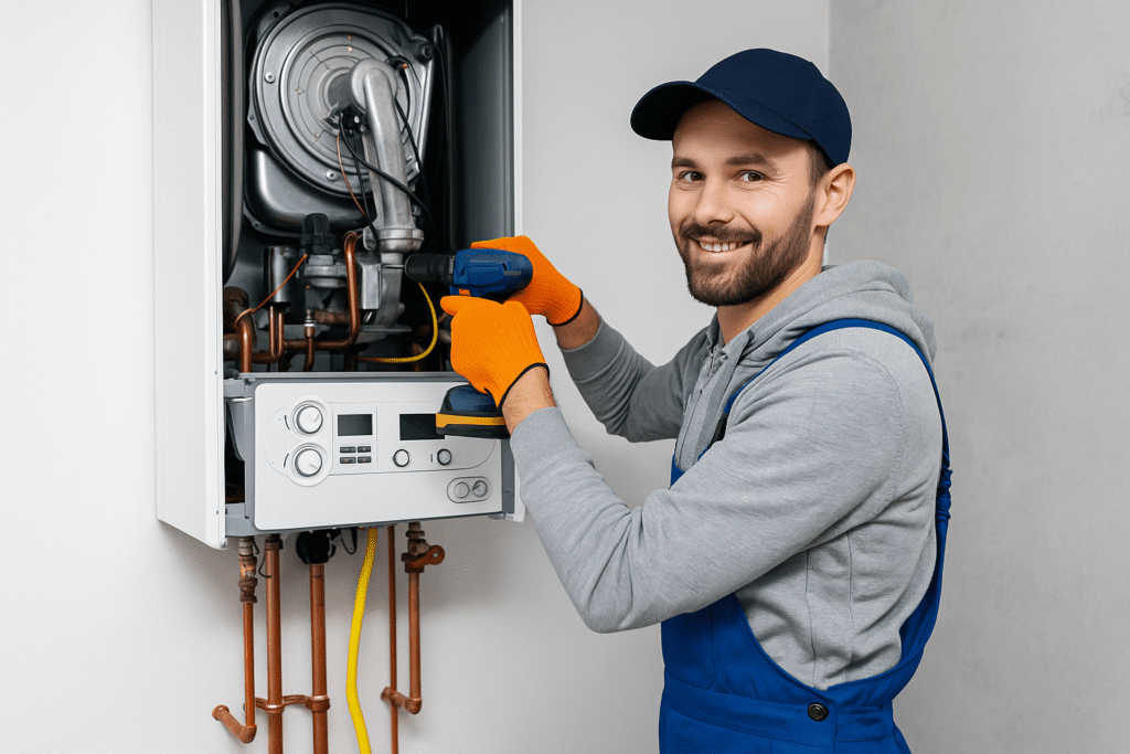 Bakım sırasında cihazın iç temizliği, filtre kontrolü, baca kontrolü, su basıncı ayarı ve genel performans testi yapılır.